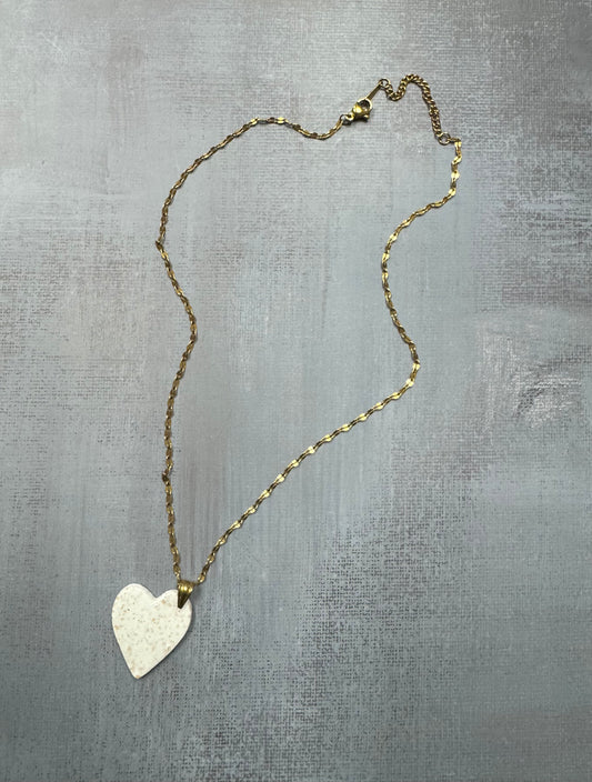White Heart Golden Necklace